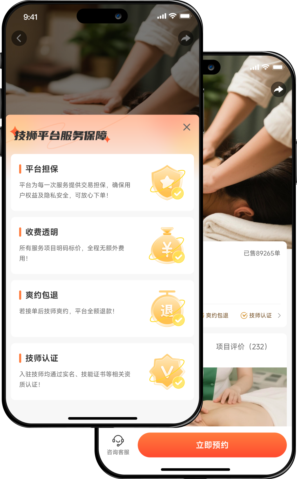 爽约包退:若接单后技师爽约,平台全额退款!